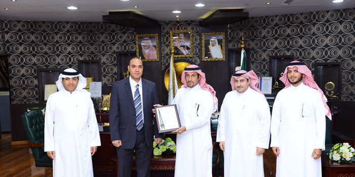 قام عميد كلية الهندسة بجامعة المجمعة الدكتور عبد الله بن عبد المحسن العبد الكريم ووكيل الكلية للجودة الدكتور عبد الله المحسن ووكيل عمادة الجودة الدكتور صالح الدهش والأستاذ المساعد بقسم الهندسة الميكانيكية والصناعية الدكتور طارق الباجورى بزيارة لمدير الجامعة الدكتور خالد بن سعد المقرن، وذلك لتقديم التهنئة بحصول كلية الهندسة على أول براءة اختراع في مجال الهندسة الميكانيكية، وقدموا خلال الزيارة نسخة من براءة الاختراع، وذلك تعبيراً عن تقديرهم لراعي الابتكارات والاختراعات العلمية بالجامعة.