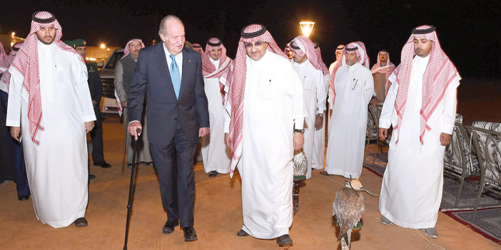 أقام صاحب السمو الملكي الأمير محمد بن نايف بن عبدالعزيز ولي العهد نائب رئيس مجلس الوزراء وزير الداخلية -حفظه الله-، مساء أمس الأول، مأدبة عشاء؛ تكريماً لجلالة الملك خوان كارلوس ملك مملكة إسبانيا السابق، وذلك في مخيم سموه بالرياض.