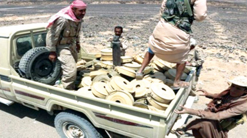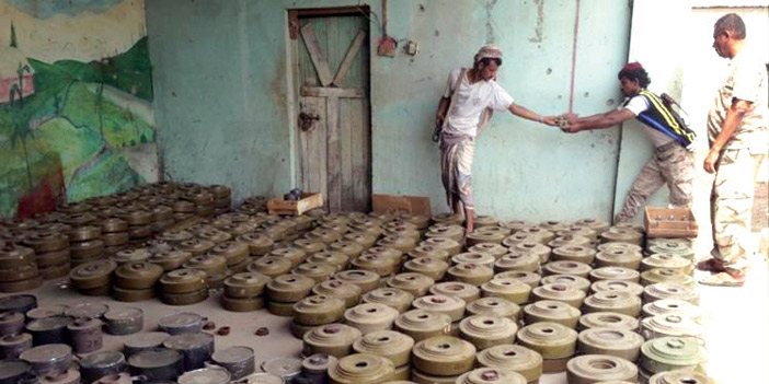 ويتعمد الحوثيون زرع الألغام في المرافق العامة والطرقات والأحياء السكنية لدى انسحابهم ، لوقف تقدم المقاومة الشعبية، في كثير من المحافظات، وكانت قوات التحالف العربي قد أمدت القوات الشرعية بالخبراء والأدوات اللازمة للتخلص من الألغام ، وتم بالفعل نزع الآلاف من الألغام الأرضية التي زرعها الحوثيون وقوات صالح في مناطق عدة.