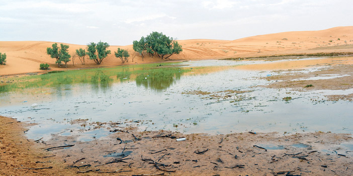 أدى هطول الأمطار الغزيرة والمتوسطة خلال نهاية الأسبوع الجاري، إلى خروج الأهالي في محافظة الرس وغيرها من محافظات المنطقة للاستمتاع بالأجواء العليلة التي تميل للبرودة، وتسببت الأمطار الأخيرة التي هطلت على المنطقة إلى تكون عدة بحيرات طبيعية بين أحضان الكثبان الرملية «النفود» وجذبت المتنزهين لجمالها الملفت وقطعوا مسافات طويلة من عدة محافظات لكي يصلوا إلى هذه المواقع شرق محافظة عنيزة، وقد رصدت عدسة «الجزيرة» ظهور «الباذر» ونمو العشب وسط وبمحاذاة هذه البحيرات الصغيرة التي يحيط بها أشجار الأثل والعوسج والغضا، وغيرها من ِشجيرات تشتهر بها منطقة نجد العذية، التي تشتهر بتنوع تضاريسها وجمال طقسها في فصل الشتاء وخلال موسم هطول الأمطار.