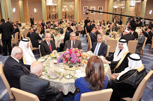 أقام السفير أحمد بن عبد العزيز قطان سفير خادم الحرمين الشريفين لدى جمهورية مصر العربية مندوب المملكة الدائم لدى الجامعة العربية حفلاً لصاحب السمو الملكي الأمير خالد الفيصل مستشار خادم الحرمين الشريفين أمير منطقة مكة المكرمة رئيس مؤسسة الفكر العربي، مساء أول أمس، تكريماً لسموه بمناسبة زيارته لمصر وافتتاح مؤتمر «فكر 14» لمؤسسة الفكر العربي. وحضر الحفل الذي أقيم بمقر السفارة في القاهرة الرئيس المصري السابق عدلي منصور ورئيس الوزراء المصري المهندس شريف إسماعيل، وعدد من الوزراء والسفراء العرب والمثقفين والمفكرين والأدباء. وقد بدأ الحفل بآيات من الذكر الحكيم، ثم ألقى السفير قطان كلمة رحب فيها بالحضور، مهنئاً سمو الأمير خالد الفيصل بنجاح مؤتمر «فكر 14» الذي اختتم أعماله. ونوه السفير قطان بجهود سمو الأمير خالد الفيصل لخدمة دينه ووطنه منذ أن كان أميرًا لمنطقة عسير. عقب ذلك شاهد سمو أمير منطقة مكة المكرمة والحضور فيلمًا تسجيلياً تناول جهود سموه في خدمة الثقافة العربية، ثم ألقى الأمير خالد الفيصل كلمة ثمّن فيها دور مصر عاليًا، معربًا عن شكره لمصر رئيسًا وحكومة وشعبًا على ما لمسه ووجده خلال فترة إقامته في القاهرة التي شهدت انعقاد اجتماعات مؤتمر مؤسسة الفكر العربي بالقاهرة على مدى ثلاثة أيام، وقال: «أشكر مصر رئيسًا وحكومة وشعبًا على كل ما وجدناه بين أهلنا وإخواننا على ضفتي نهر النيل، التي تذكرنا دائمًا بمكانة مصر وعلاقات مصر، ليس فقط مع المملكة العربية السعودية وأبنائها، وإنما مع العالم العربي أجمع»، مشدداً على قوة العلاقة بين البلدين وقال «علاقات مصر والسعودية مرت بمراحل، وستبقى دوماً قوية ومتينة». كما أعرب سمو الأمير خالد الفيصل عن شكره لجامعة الدول العربية التي احتضنت هذا المؤتمر وفتحت جميع الأبواب للمفكرين والمثقفين. وفي ختام الحفل تسلّم سمو الأمير خالد الفيصل هدية تذكارية بهذه المناسبة من السفير أحمد قطان، كما كرّم السفير قطان الفائزين بجوائز مؤسسة الفكر العربي والأمناء العامين لجامعة الدول العربية، وهم: الشاذلي القليبي، وعمرو موسى، والدكتور نبيل العربي.