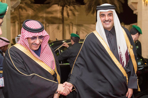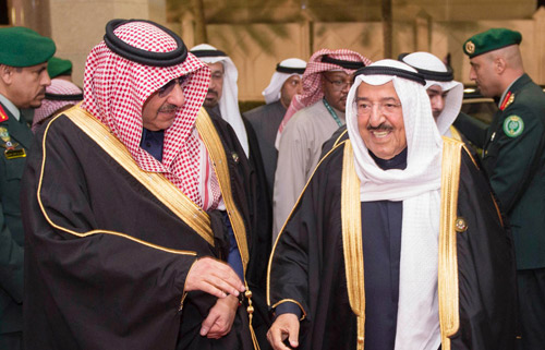 استقبل خادم الحرمين الشريفين الملك سلمان بن عبدالعزيز آل سعود -حفظه الله- في قصر الدرعية بالرياض أمس إخوانه أصحاب الجلالة والسمو قادة ورؤساء وفود دول مجلس التعاون لدول الخليج العربية، الذين توافدوا تباعاً للمشاركة في أعمال الدورة السادسة والثلاثين للمجلس الأعلى لمجلس التعاون الخليجي، وهم صاحب السمو السيد فهد بن محمود آل سعيد نائب رئيس مجلس الوزراء لشؤون مجلس الوزراء بسلطنة عمان وصاحب السمو الشيخ صباح الأحمد الجابر الصباح أمير دولة الكويت وجلالة الملك حمد بن عيسى آل خليفة ملك مملكة البحرين وصاحب السمو الشيخ تميم بن حمد آل ثاني أمير دولة قطر وصاحب السمو الشيخ محمد بن راشد آل مكتوم نائب رئيس دولة الإمارات العربية المتحدة رئيس مجلس الوزراء حاكم دبي. بعد ذلك صحب خادم الحرمين الشريفين -أيده الله- أصحاب الجلالة والسمو للقاعة الرئيسية لبدء أعمال القمة.
