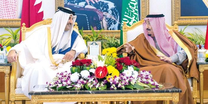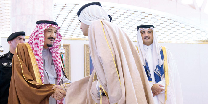 كما وصل صاحب السمو الشيخ تميم بن حمد آل ثاني أمير دولة قطر ليرأس وفد بلاده في أعمال القمة.. وكان خادم الحرمين الشريفين الملك سلمان بن عبدالعزيز آل سعود -حفظه الله- في مقدمة مستقبليه بمطار الملك خالد الدولي. كما كان في استقباله، صاحب السمو الملكي الأمير فيصل بن بندر بن عبدالعزيز أمير منطقة الرياض، وصاحب السمو الملكي الأمير محمد بن نايف بن عبدالعزيز ولي العهد نائب رئيس مجلس الوزراء وزير الداخلية، وصاحب السمو الملكي الأمير محمد بن سلمان بن عبدالعزيز ولي ولي العهد النائب الثاني لرئيس مجلس الوزراء وزير الدفاع، ومعالي الأمين العام لمجلس التعاون لدول الخليج العربية الدكتور عبداللطيف بن راشد الزياني، ومعالي وزير الثقافة والإعلام الدكتور عادل بن زيد الطريفي، الوزير المرافق، ومعالي رئيس المراسم الملكية الأستاذ خالد بن صالح العباد، ومعالي أمين منطقة الرياض المهندس إبراهيم بن محمد السلطان، وسفير خادم الحرمين الشريفين لدى دولة قطر عبدالله العيفان، وسفير دولة قطر لدى المملكة الشيخ عبدالله آل ثاني.
