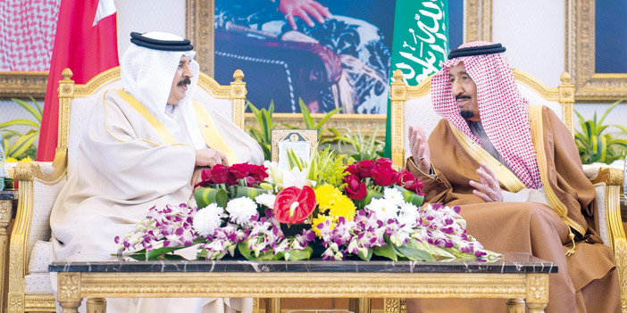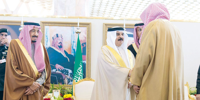 كما وصل جلالة الملك حمد بن عيسى آل خليفة ملك مملكة البحرين ليرأس وفد بلاده في أعمال القمة.. وكان خادم الحرمين الشريفين الملك سلمان بن عبدالعزيز آل سعود -حفظه الله- في مقدمة مستقبليه بمطار الملك خالد الدولي. كما كان في استقباله، صاحب السمو الملكي الأمير فيصل بن بندر بن عبدالعزيز أمير منطقة الرياض، وصاحب السمو الملكي الأمير محمد بن نايف بن عبدالعزيز ولي العهد نائب رئيس مجلس الوزراء وزير الداخلية، وصاحب السمو الملكي الأمير محمد بن سلمان بن عبدالعزيز ولي ولي العهد النائب الثاني لرئيس مجلس الوزراء وزير الدفاع، ومعالي الأمين العام لمجلس التعاون لدول الخليج العربية الدكتور عبداللطيف بن راشد الزياني، معالي وزير الشئون الاجتماعية الدكتور ماجد بن عبدالله القصبي الوزير المرافق، ومعالي رئيس المراسم الملكية الأستاذ خالد بن صالح العباد، ومعالي أمين منطقة الرياض المهندس إبراهيم بن محمد السلطان، وسفير خادم الحرمين الشريفين لدى مملكة البحرين الدكتور عبدالله آل الشيخ، وسفير مملكة البحرين لدى المملكة الشيخ حمود آل خليفة.. وفي صالة التشريفات بالمطار، صافح الملك حمد بن عيسى آل خليفة مستقبليه صاحب السمو الملكي الأمير الدكتور منصور بن متعب بن عبدالعزيز وزير الدولة عضو مجلس الوزراء مستشار خادم الحرمين الشريفين، وصاحب السمو الملكي الأمير متعب بن عبدالله بن عبدالعزيز وزير الحرس الوطني، وصاحب السمو الملكي الأمير عبدالعزيز بن سلمان بن عبدالعزيز نائب وزير البترول والثروة المعدنية، وأصحاب المعالي الوزراء، وقادة القطاعات العسكرية.. كما صافح خادم الحرمين الشريفين -أيده الله- الوفد الرسمي لمملكة البحرين.