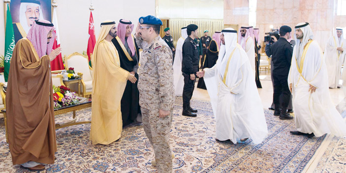 كما كان في استقباله، صاحب السمو الملكي الأمير فيصل بن بندر بن عبدالعزيز أمير منطقة الرياض، وصاحب السمو الملكي الأمير محمد بن نايف بن عبدالعزيز ولي العهد نائب رئيس مجلس الوزراء وزير الداخلية، وصاحب السمو الملكي الأمير محمد بن سلمان بن عبدالعزيز ولي ولي العهد النائب الثاني لرئيس مجلس الوزراء وزير الدفاع، ومعالي الأمين العام لمجلس التعاون لدول الخليج العربية الدكتور عبداللطيف بن راشد الزياني، ومعالي وزير الصحة المهندس خالد بن عبدالعزيز الفالح الوزير المرافق، ومعالي رئيس المراسم الملكية الأستاذ خالد بن صالح العباد، ومعالي أمين منطقة الرياض المهندس إبراهيم بن محمد السلطان، وسفير خادم الحرمين الشريفين لدى الكويت الدكتور عبدالعزيز الفايز وسفير الكويت لدى المملكة الشيخ ثامر جابر الأحمد الصباح. وفي صالة التشريفات بالمطار، صافح صاحب السمو الشيخ صباح الأحمد الجابر الصباح مستقبليه صاحب السمو الملكي الأمير الدكتور منصور بن متعب بن عبدالعزيز وزير الدولة عضو مجلس الوزراء مستشار خادم الحرمين الشريفين، وصاحب السمو الملكي الأمير متعب بن عبدالله بن عبدالعزيز وزير الحرس الوطني، وصاحب السمو الملكي الأمير عبدالعزيز بن سلمان بن عبدالعزيز نائب وزير البترول والثروة المعدنية، وأصحاب المعالي الوزراء، وقادة القطاعات العسكرية.. كما صافح خادم الحرمين الشريفين -أيده الله- الوفد الرسمي لدولة الكويت. كما وصل سمو الشيخ محمد بن راشد آل مكتوم نائب رئيس دولة الإمارات العربية المتحدة رئيس مجلس الوزراء حاكم دبي ليرأس وفد بلاده في أعمال القمة.. وكان خادم الحرمين الشريفين الملك سلمان بن عبدالعزيز آل سعود -حفظه الله - في مقدمة مستقبليه بمطار الملك خالد الدولي.. كما كان في استقباله، صاحب السمو الملكي الأمير فيصل بن بندر بن عبدالعزيز أمير منطقة الرياض، وصاحب السمو الملكي الأمير محمد بن نايف بن عبدالعزيز ولي العهد نائب رئيس مجلس الوزراء وزير الداخلية، وصاحب السمو الملكي الأمير محمد بن سلمان بن عبدالعزيز ولي ولي العهد النائب الثاني لرئيس مجلس الوزراء وزير الدفاع، ومعالي الأمين العام لمجلس التعاون لدول الخليج العربية الدكتور عبداللطيف بن راشد الزياني، ومعالي وزير التجارة والصناعة الدكتور توفيق بن فوزان الربيعة الوزير المرافق، ومعالي رئيس المراسم الملكية الأستاذ خالد بن صالح العباد، ومعالي أمين منطقة الرياض المندس إبراهيم بن محمد السلطان، وسفير خادم الحرمين الشريفين دولة الإمارات الدكتور محمد البشر، والسفير الإماراتي لدى المملكة محمد الظاهري.