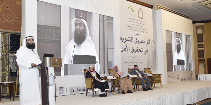 وقدم الدكتور محمد سويلم الأستاذ بكلية الدراسات الإسلامية والشريعة بالأحساء، بحثاً عنوانه: العدالة الإسلامية وأثرها في تحقيق الأمن الاجتماعي والاقتصادي، جاء فيه: إن الشريعة الإسلامية جاءت بكل ما من شأنه تحقيق العدل بمفهومه الشامل بين جميع البشر، وهذا العدل الذي يمثل ركيزة أساسية من ركائز الشريعة الإسلامية ينعكس على تحقيق الأمن الشامل والكامل والذي يعد ضرورة من ضرورات الحياة، بل هو الغاية التي تسعى إليها كافة المجتمعات بشتى الوسائل ومختلف الطرق من أجل الحصول عليه. لأنه بالاستقرار والأمان تحصل السعادة ويتحقق أمن المجتمع، ولا شك أن المجتمع السليم الآمن هو الذي يقيم حياته على منهج الله وشرعه، وينظم شئونه وعلاقاته على أساس هذا المنهج. ويقتصر موضوع البحث على بيان وتوضيح فكرة عدالة الشريعة الإسلامية وتأثيرها على تحقيق الأمن الاجتماعي والاقتصادي مسترشداً بالأنظمة القانونية التي اتخذت من الشريعة الإسلامية دستوراً لها وعلى رأسها المملكة العربية السعودية.