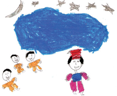 جلس اللص على كرسي صغير وهو يتأمل ذلك البيت الترابي الصغير. همس أبو داود في أذن زوجته قائلاً: «أفرغي الآن أكياس الذهب هذه ثم املئيها بالقش الناعم، وأثناء الطعام تقولين لي:»ماذا جلبت لنا». فأقول لك: «اذهبي وانظري في هذه الأكياس»، فتذهبين إليها وتفتحين أحدها، فتقولين لي:» وهل أحضرت لنا قشا بعد كل هذه الرحلة الطويلة، وعندنا قش يكفينا لسنوات وسنوات»، فقالت له: «سمعا وطاعة.»