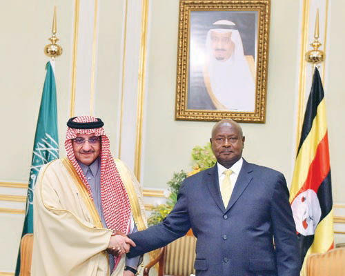 بحث صاحب السمو الملكي الأمير محمد بن نايف بن عبدالعزيز ولي العهد نائب رئيس مجلس الوزراء وزير الداخلية -حفظه الله-، مع فخامة الرئيس يوري كاجوتا موسيفيني رئيس جمهورية أوغندا، خلال لقائهما في قصر الملك سعود للضيافة بالرياض مساء أمس، العلاقات الثنائية بين البلدين، وسبل دعمها وتعزيزها في مختلف المجالات، كما جرى خلال اللقاء بحث أوجه التعاون الأمني بين البلدين.