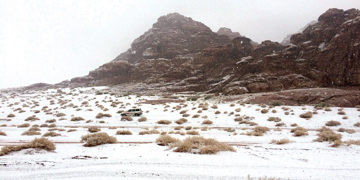 شهدت جبال اللوز وعلقان ومنطقة الظهر تساقطاً خفيفاً للثلوج مع هطول الأمطار التي شهدتها مدينة تبوك والمراكز التابعة لها، حيث عاد الزائر الأبيض يوم أمس الأحد للمنطقة مبكراً منذراً بموسم ثلجي قادم خصوصاً مع توقعات الأرصاد والفلكيين وهواة الطقس بموسم مطري وثلجي على مناطق تساقط الثلوج بمنطقة تبوك خاصة جبال اللوز ومنطقتي علقان والظهر، فيما دفعت الأجواء بالعديد من الأسر والشبان للخروج لهذه المناطق في وقت تشهد فيه مدينة تبوك تساقطاً خفيفاً للمطر الذي بدأ منذ فحر أمس الأحد في وقت حذَّر فيه الدفاع المدني الجميع من أخذ الحيطة والحذر في هذه الأجواء وعدم التوغل في الصحاري وتعريض حياة الإنسان للخطر، فيما كثّف رجال أمن الطرق وجودهم في طريق تبوك - جبال اللوز.