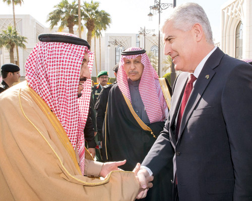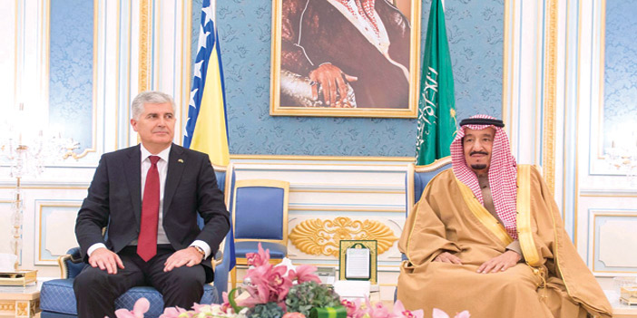 عقد خادم الحرمين الشريفين الملك سلمان بن عبدالعزيز آل سعود - حفظه الله - في قصر اليمامة امس جلسة مباحثات رسمية مع فخامة الرئيس الدكتور درجان تشوفيتش رئيس مجلس رئاسة البوسنة والهرسك. وجرى خلال جلسة المباحثات استعراض العلاقات الثنائية، وبحث آفاق التعاون بين البلدين، وسبل تطويرها وتعزيزها في شتى المجالات. حضر جلسة المباحثات صاحب السمو الملكي الأمير فيصل بن بندر بن عبدالعزيز أمير منطقة الرياض، وصاحب السمو الملكي الأمير متعب بن عبدالله بن عبدالعزيز وزير الحرس الوطني، وصاحب السمو الملكي الأمير محمد بن نايف بن عبدالعزيز ولي العهد نائب رئيس مجلس الوزراء وزير الداخلية، ومعالي وزير الدولة عضو مجلس الوزراء الدكتور مساعد بن محمد العيبان، ومعالي وزير الشؤون الاجتماعية الدكتور ماجد بن عبدالله القصبي الوزير المرافق، ومعالي وزير الثقافة والإعلام الدكتور عادل بن زيد الطريفي، ومعالي وزير الدولة للشؤون الخارجية الدكتور نزار بن عبيد مدني، وسفير خادم الحرمين الشريفين لدى البوسنة والهرسك هاني عبدالله مؤمنة. كما حضرها من الجانب البوسني، معالي نائب وزير الخارجية يوسيب بركيتش، ومديرة مكتب الرئيس تونكا كريشيتش، والقائم بأعمال سفارة البوسنة والهرسك لدى المملكة ارمين ليمو.