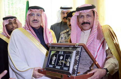 بعد ذلك توجه سموه إلى مبنى قيادة القطاع، قدم له خلالها قائد حرس الحدود بالمنطقة هدية تذكارية، ثم توجه سموه إلى مركز القيادة والسيطرة حيث شاهد سموه عرضاً مرئياً عن إنجازات رجال حرس الحدود والمهام التي يقومون بها ،معرباً سموه عن سروره وسعادته بما شاهده مثمناً الجهود المباركة التي يقوم بها قائد حرس الحدود وزملائه من ضباط وأفراد.