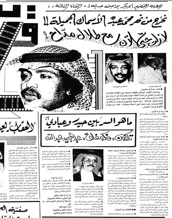 الزميل صلاح مخارش أجرى حواراً ثرياً مع أبو أصيل في العدد (7751) بتاريخ 18 ديسمبر 1993م على جزأين، أجاب فيه أبو بكر عن الأحداث التي تهم الساحة الفنية وقتها، أهمها ابتعاد الفنان محمد عبده عن الساحة والذي أجاب عنه أبو أصيل بقوله: " لا شك أن ابتعاد محمد عبده أثر على الساحة الفنية، ونتمنى أن يعود بقوة كما نعهده دائماً، فهو معروف على الساحة العربية وله شأنه وهو من الناس الذين نهضوا بالأغنية الخليجية نهضة كبيرة جداً، وأرجو له بعد هذا التوقف أن يتمعن ويأتي بمعينه السابق ونخرج من نهره بأسماك جميلة وكأنها لؤلؤ ومرجان تقيم بأكثر من الذهب".