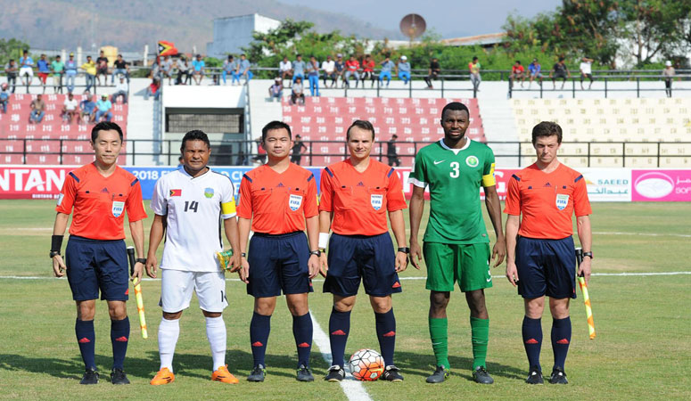 حقق الأخضر فوزاً عريضاً على مضيفه منتخب تيمور الشرقية بعشرة أهداف دون مقابل، في المباراة التي أقيمت صباح اليوم الثلاثاء على الاستاد البلدي بمدينة ديلي عاصمة تيمور، في الجولة الثامنة من التصفيات الآسيوية المشتركة المؤهلة لكأس العالم 2018م في روسيا وكأس آسيا 2019 بالإمارات. سجل الأهداف: محمد السهلاوي (29-42-55-70-89)، اسامة هوساوي (34)، يحيى الشهري (35)، تيسير (85)، نايف هزازي (90)، فهد المولد (91(.
