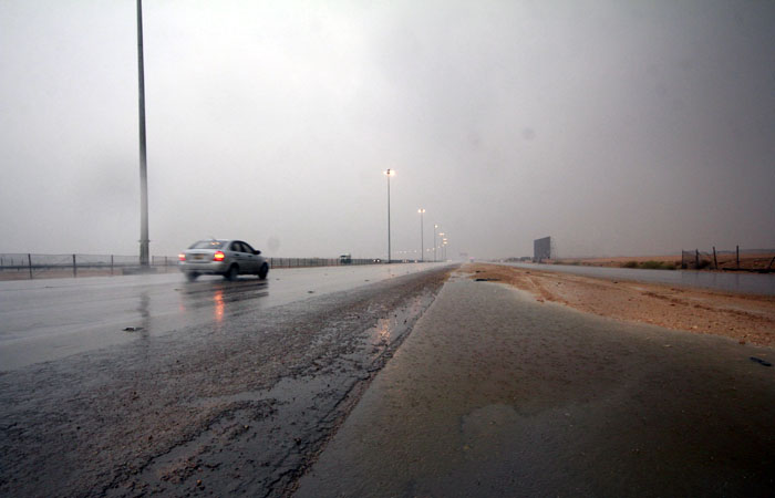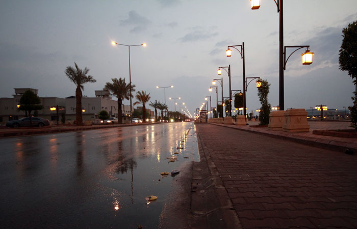 هطلت ليلة البارحة واليوم أمطار من متوسطة إلى غزيرة على مدينة الرياض ارتوت على إثرها الأرض.