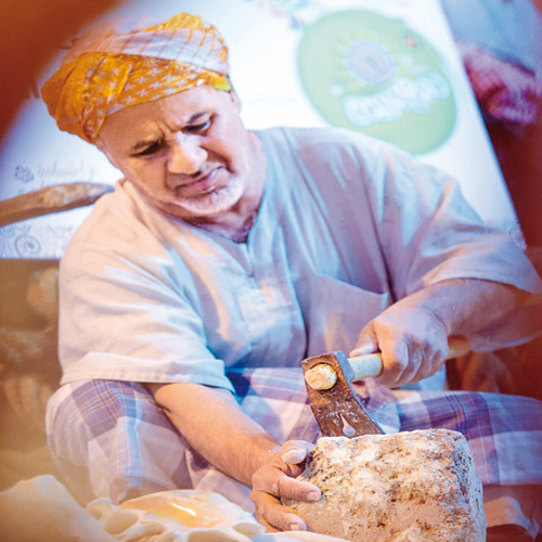 عبد العزيز الحلواني أحد الحرفيين العاملين في جناح الساحل الغربي حكى قصة تلك المفارقة التي نقلت ساحل المنطقة الغربية إلى قلب «صحراء نجد» وكيف أصبحت تلك التوليفة إحدى أولويات المشاهدة والرؤية لكل زوار المهرجان.