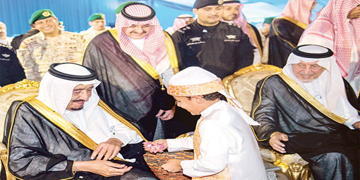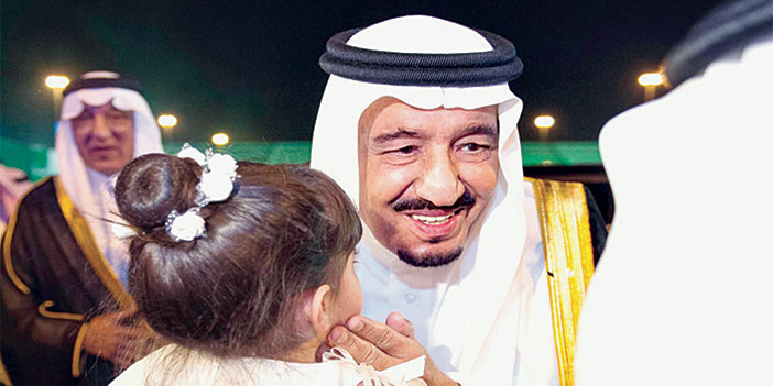 إثر ذلك تقدم مجموعة من الأطفال ينثرون الورود ترحيبًا بخادم الحرمين الشريفين، وتشرفوا بالسلام عليه -أيده الله-، وسمو ولي العهد، وسمو ولي ولي العهد.