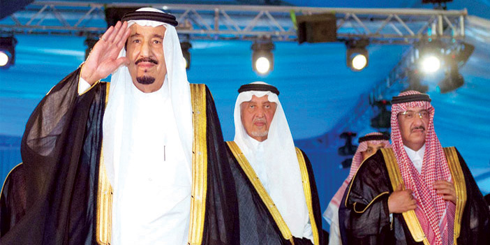 بعدها شاهد خادم الحرمين الشريفين والحضور عروضاً وأهازيج شعبية وسط تشكيلة متنوعة بالصوت والضوء، شارك فيها 900 شاب، بالإضافة إلى عمل درامي أداه عدد من الفنانين.