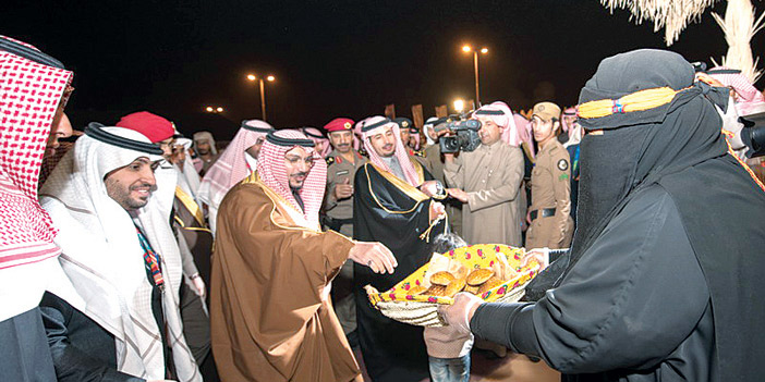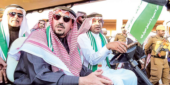 وفى ختام الزيارة أدلى سموه الكريم بتصريح للإعلاميين قال فيه: «نحمد الله ونشكره أن منّ على بلادنا بالخيرات والأمن والأمان والاستقرار بقيادة سيدي خادم الحرمين الشريفين الملك سلمان بن عبد العزيز - حفظه الله - وسمو ولي عهده الأمين وسمو ولي ولي العهد، ثم بعد ذلك أبارك لأنفسنا بذكرى البيعة بيعة سيدي خادم الحرمين الشريفين الملك سلمان بن عبد العزيز الذي توافق هذا اليوم، وما عشناه العام الماضي وهذا العام من خيرات ومنجزات وتطور وأمور، ولله الحمد اختصرها الزمن من سنوات إلى سنة واحدة، وفيها الكثير من الحزم والعزم وكل خير لهذه البلاد، مما يجعل كل مواطن سعودي يفتخر ويعتز بأنّ قائده هو القائد المظفر سلمان بن عبد العزيز، والأمر الثاني أبارك لأنفسنا جميعاً مضيفاً للمهرجان، ومن حسن الصدف أن تصادف زيارتي له مثل هذا اليوم ورأيت ما سرني مثل وجود هذه الأعداد المهيلة وهذه الأعداد الكبيرة من الزوار في جميع أنحاء منطقة الغضا وفي جميع محافظة عنيزة، الذين رأيتهم هم ليس من منطقة القصيم فحسب، وإنما من جميع المناطق المجاورة أتوا ليشهدوا هذا المهرجان الناجح والمتألق وما شهدت في القرية الشعبية، وما شاهدناه أنه لاشك من التطور الذي أصبح سمة من سمات مهرجان الغضا في عنيزة، رأينا حقيقة التطور الكبير رأينا الشاهد الأساسي على التطور مثل التواجد الشعبي الكبير، فعندما ترى مثل تلك الأعداد فلا أدنى شك بأن المهرجان ناجح وأنا الحقيقة أشيد في الإخوان في شركة رامة وما قاموا به من تطوير في هذا المهرجان، كثير من الإخوان الذين التقيتهم كانوا راضين كل الرضا، هناك تنوع في الفعاليات، هناك شرائح كثيرة من المجتمع من الصغار والكبار ومن الأخوات ومن جميع شرائح المجتمع، فهذا يدل على نجاح هذا المهرجان. نسال الله أن يديم على بلادنا الأمن والأمان والاستقرار، ولا أنسى ما أضفى على هذا المهرجان تكريس الوطنية وهذه الجماهير الكبيرة وهم فريق الصقور السعودية الذين استعرضوا هذه الاستعراضات الرائعة المتميزة والذي كان لها أكبر الأثر في أنفس الحاضرين، فالجميع يشيد بالصقور الخضر وباستعراضاتهم ومهاراتهم، ومما يزيدنا فخراً واعتزازاً في المملكة العربية السعودية، أن هؤلاء الشباب السعوديين الذين يستعرضون بمهاراتهم أمام الحضور هم من يدافع عن إخوانهم وزملائهم في الحد الجنوبي من المملكة العربية السعودية للذود عن الوطن، فأنا الحقيقة أبارك لذا المهرجان مشاركة الصقور الخضر وأبارك للصقور الخضر بنجاح مهاراتهم واستعراضاتهم الجميلة والرائعة والمتميزة، الجميع كانوا يثنون على هذه المهارات، الجميع كانوا مسرورين وكلهم فخر واعتزاز بأن الشاب السعودي أصبح ولله الحمد يستعرض هذه المهارات أمام أبناء المملكة العربية السعودية وأبناء هذه المحافظة والمنطقة، نسأل الله وتعالى أن يرزقنا شكر نعمته وأن يديم على هذه البلاد أمنها وأمانها واستقرارها بقيادة رشيدة بقياد سيدي خادم الحرمين الشريفين الملك سلمان بن عبد العزيز، وان يوفق جميع القائمين على مثل هذه المهرجانات لكل خير، وشاهدنا ولله الحمد إبداعا وتميزا في هذا المهرجان، وليس بغريب على مهرجان الغضا والقائمين عليه مثل هذا الإبداع والتميز وهذا هو طبعكم، وهذه هي حقيقة هي سيرتهم منذ أن عرفناهم».
