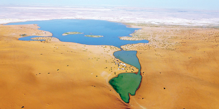 في مشهد بديع وعلى ضفاف النفود تكونت بحيرة من مياه الأمطار التي هطلت في الوسم لترسم لوحة من المياه تخترق رمال ونفود مدينة رغبة والقصب - شمال غرب منطقة الرياض بنحو 140 كيلومتراً.