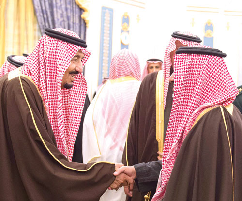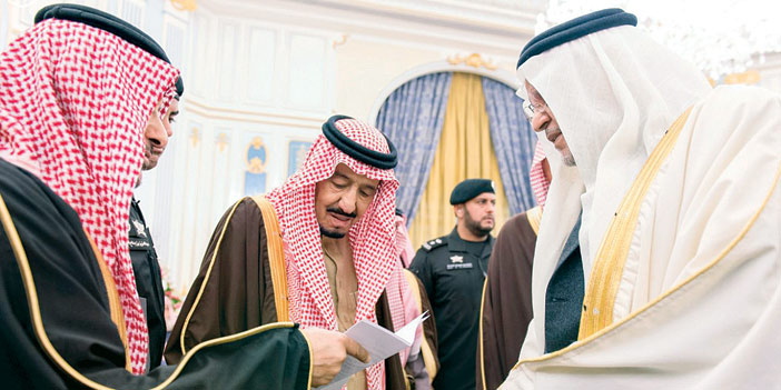 استقبل خادم الحرمين الشريفين الملك سلمان بن عبدالعزيز آل سعود - حفظه الله - في قصر اليمامة أمس الثلاثاؤ، أصحاب السمو الأمراء، وسماحة مفتي عام المملكة، وأصحاب الفضيلة العلماء، وجموعاً من المواطنين الذين قدموا للسلام عليه - رعاه الله-. وفي بداية الاستقبال أنصت الجميع لتلاوة آيات من القرآن الكريم ثم تشرف الجميع بالسلام على خادم الحرمين الشريفين - أيده الله-.