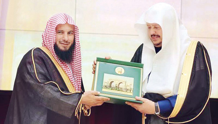 وبيّن أن الجامعة الإسلامية وهي تقيم هذا المؤتمر، فإنها تؤكد في رسالتها على الدعوة إلى الله بالحكمة والموعظة الحسنة وتحقيق وسطية الإسلام، ولين الجانب مع الناس، والبُعد عن مواطن الفتن، مفيدًا أن المؤتمر يؤكد كذلك على أهمية حفظ الضرورات الخمس، وإبراز مكانة الثوابت الشرعية، وخطورة المساس بها، وبيان العواقب الوخيمة في الافتئات على ولي الأمر في الفتوى والحكم، وبيان أهمية الاجتماع، وخطورة التفرق والتحزب، وبيان أسباب الانحراف في مفهوم الجماعة والاجتماع، والتأكيد على تعزيز الوحدة الوطنية من خلال محاور المؤتمر وجلساته، التي سوف يثريها العلماء والأكاديميون المشاركون. ورفع العبيد شكره وتقديره لخادم الحرمين الشريفين الملك سلمان بن عبد العزيز آل سعود، ولصاحب السمو الملكي الأمير محمد بن نايف بن عبد العزيز ولي العهد نائب رئيس مجلس الوزراء وزير الداخلية، ولصاحب السمو الملكي الأمير محمد بن سلمان بن عبد العزيز ولي ولي العهد النائب الثاني لرئيس مجلس الوزراء وزير الدفاع - حفظهم الله -، مقدمًا شكره لصاحب السمو الملكي الأمير فيصل بن سلمان بن عبد العزيز أمير منطقة المدينة المنورة، على ما تحظى به الجامعة من دعم ومتابعة ومساندة. عقب ذلك ألقى معالي رئيس مجلس الشورى الشيخ عبدالله بن محمد آل الشيخ كلمة نيابة عن ضيوف المؤتمر قال فيها: إن هذه البلاد المباركة بلاد الحرمين ومهبط الوحي قد هيأ الله لها حكومة تحفظ هذا الدين، وتقدمه إلى العالم بوسائل عصرية حديثة، وبأسلوب متميز، ولعل من أبرز الأمثلة على ذلك إنشاء هذه الجامعة المباركة، ونحمد الله تعالى أن هيأ لهذه البلاد المباركة في هذه المرحلة الصعبة التي تعيشها المنطقة بل وجميع بلدان العالم حاكمًا حازمًا يدرس الرأي، ثم يتوكل على الله ويحزم أمره، وهو خادم الحرمين الشريفين الملك سلمان بن عبد العزيز آل سعود -حفظه الله-. وأثنى آل الشيخ، على ما يحمله المؤتمر من موضوعات مهمة، وخصوصًا في هذه المرحلة الصعبة التي تعيشها الأمة الإسلامية بعمومها، وعلى المنطقة العربية بوجه خاص، مبينًا أن المؤتمر يبحث في ظروف مهمة تحفظ الضرورات الخمس، وتبيّن أثر التحزب، والوقوف عند المسميات الحزبية البسيطة، والانشغال بها عن المعنى العام الذي دعت له هذه الشريعة المباركة، من خلال بحوث مؤصلة من باحثين جادين مما يحفظ وحدة المسلمين. وأردف معاليه قائلاً: إن المؤتمر يبرز جانب الشريعة الإلامية والثوابت التي تحافظ عليها، كما يبين خطورة الافتئات على ولي الأمر سواء بجانب الفتوى أو في الجوانب الأخرى التي هي من اختصاصه ونصت عليها الشريعة. كما بدأ مفتي عام المملكة الأردنية الهاشمية الشيخ عبدالكريم سليم الخصاونة كلمته بالنيابة عن المشاركين، مقدمًا الشكر والتقدير إلى خادم الحرمين الشريفين الملك سلمان بن عبد العزيز آل سعود، - حفظه الله-، على جهوده الكبيرة وأعماله الجليلة وما يقوم به من مساعدة للأمة العربية والإسلامية. وقال الخصاونة: كلنا يعلم ما تتعرض له الأمة الإسلامية من تحديات تُهدد هويّتها، وتفرّق كلمتها، وتعمل على تشويه دينها، والنيل من مقدساتها.. فعَقْدُ هذا المؤتمر العلمي المبارك في هذه البلد الطيب «طيبة الحبيبة» بعنوان «تحقيق الاجتماع وترك التحزب والافتراق... واجب شرعي ومطلب ديني» لم تكن أمتنا في يوم من الأيام أحوج إلى تحقق الاجتماع وترك التحزب والافتراق من أيامنا هذه، فقد استحكمت حلقات الفرقة واحدة تلو الأخرى، وانفرط عقد الوحدة.