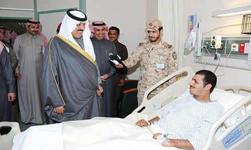 من جهتهم؛ عبّر المصابون عن شكرهم الجزيل لسمو الأمير متعب بن عبدالله لتواصله الدائم معهم والسؤال عنهم والوقوف على حالتهم وتلمس احتياجاتهم، مؤكدين أن إصابتهم هي وسام شرف وفخر، وأن الدفاع عن الدين والوطن يستلزم بذل الغالي والنفيس من الجميع.