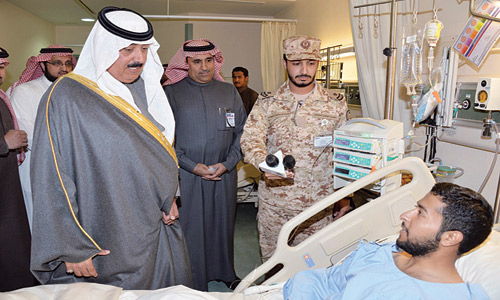 وقد نقل سمو وزير الحرس الوطني للمصابين تحيات خادم الحرمين الشريفين الملك سلمان بن عبدالعزيزآل سعود -حفظه الله ورعاه- مطمئناً على وضعهم الصحي والرعاية الطبية التي يتلقونها.