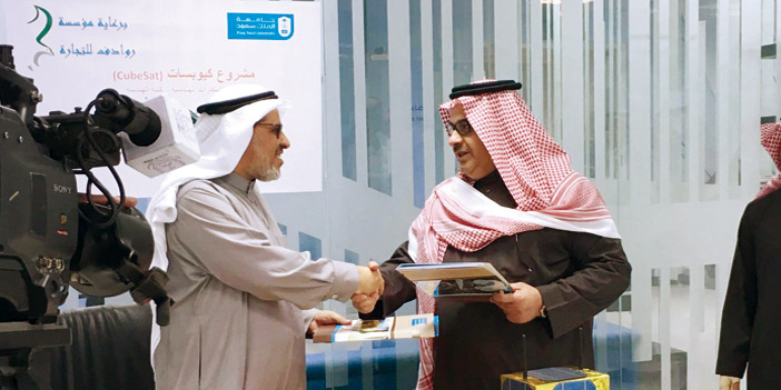 أعلن في جامعة الملك سعود أول أمس عن توقيع اتقافية بين كلية الهندسة ومؤسسة روادف للتجارة لدعم إنشاء وتصميم وإطلاق مشروع القمر الصناعي التعليمي (كيبوسات) والتدريب عليه، والذي سيحمل اسم خادم الحرمين الشريفين الملك سلمان بن عبد العزيز - حفظه الله - بمسمى (سلمان سات)، حيث تهدف الاتفاقية التي تم إبرامها إلى تقديم الدعم لإنشاء مشروع الأقمار التعليمية Cubesate بكلية الهندسة لإكمال المشروع بمراحله الأربع في توفير وتركيب ومعايرة المحطة الأرضية والاختبارات والتدريب على تقنيات التشغيل، وتصميم وتصنيع النموذج الهندسي ونموذج الإطلاق للقمر الصناعي والتدريب، وتجميع واختبار أجهزة القمر المخصص للإطلاق.