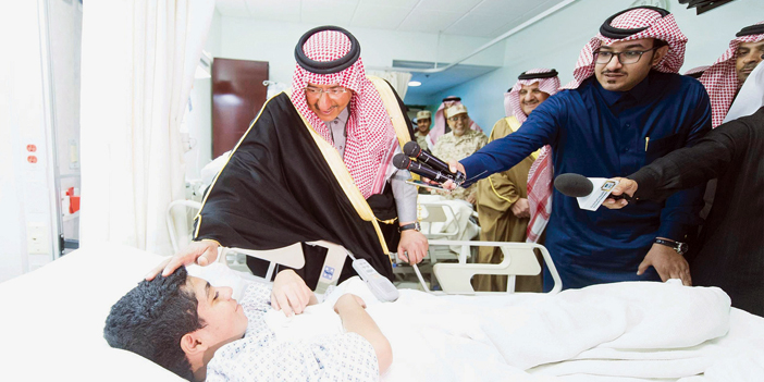 قام صاحب السمو الملكي الأمير محمد بن نايف بن عبدالعزيز ولي العهد نائب رئيس مجلس الوزراء وزير الداخلية، و صاحب السمو الملكي الأمير سعود بن نايف بن عبدالعزيز أمير المنطقة الشرقية مساء أمس بزيارة للمواطنين الذين يتلقون العلاج والرعاية الطبية بمستشفى الملك عبدالعزيز للحرس الوطني بالأحساء نتيجة الإصابة التي تعرضوا لها في الجريمة النكراء التي استهدفت مسجد الرضا في محافظة الأحساء أمس الأول الجمعة وخلفت ضحايا أبرياء، حيث اطمأن سموهما على الوضع الصحي للمصابين والرعاية الطبية التي يتلقونها متمنيا لهم الشفاء العاجل. ونقل سمو ولي العهد للمصابين تمنيات ودعوات خادم الحرمين الشريفين الملك سلمان بن عبدالعزيز آل سعود -أيده الله-، وصاحب السمو الملكي الأمير محمد بن سلمان بن عبدالعزيز ولي ولي العهد النائب الثاني لرئيس مجلس الوزراء وزير الدفاع بأن يمن الله عليهم بالشفاء العاجل.