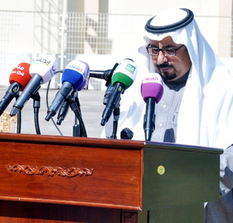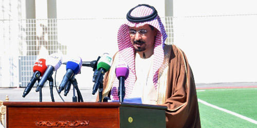 وتطرق العويس خلال كلمته، إلى ما أنعم الله على بلادنا بأن هيّأ لها قيادة حكيمة حريصة على تنمية الفرد والمجتمع ساعية إلى توفير أمن واستقرار الوطن ورفاهية المواطن, مستشهداً بأنه لا يكاد يمرّ يوماً إلاّ ونشاهد أو نسمع عن وضع حجر أساس أو تدشين مشروع تنموي هنا وهناك في أرجاء الوطن، ومشيداً بالقيادة الرشيدة التي أحبّت المواطن والوطن وسخرت كافة الإمكانات لتحقيق الصالح العام فبادلها المواطن بالحبّ والولاء والإخلاص, مؤكداً أن القيادة قادت - بفضل الله - دفّة سفينة الوطن إلى بر الأمان في خضمّ الأحداث المتلاحقة التي عصفت بكثير من البلدان من حولنا، فالواجب علينا الشكر لله سبحانه وتعالى على عظيم النعم ثم لولاة الأمر على ما بذلوا ويبذلون في سبيل الوطن والمواطن, لافتاً إلى أنه يجب أن نعي ما يدور حولنا من دسائس وما يحاك للوطن من أعدائه الحاقدين, ولنقف صفاً واحداً مع قيادتنا الرشيدة ضد أطماع الطامعين وضد أيّ مساسٍ بوحدتنا أو ثوابتنا أو مكتسباتنا الوطنية, مختتماً كلمته بقوله : «نكرّر الترحيب بسموكم الكريم وصحبكم الكرام مثمّنين لسموكم تجشمكم عناء السفر ومشاركتنا فرصة افتتاح هذا الصرح الشبابي, متمنين لسموكم دوام التوفيق والسداد، وسائلاً الله جلت قدرته أن يديم على بلادنا نعمة الأمن والأمان ودوام الرقي والتقدم في ظل قيادته الرشيدة, ودمت بخير ياوطني وعلى سبيل الخير دائماً نلتقي».