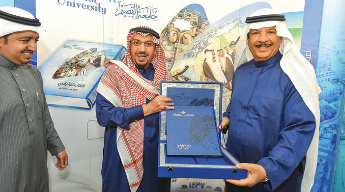 وكان الأستاذ الدكتور خالد الحمودي قد قدم إهداء الجامعة لسمو أمير القصيم, الذي كان عبارة عن الكتاب التوثيقي للجامعة 1424 - 1437هـ، ويحكي مراحل تأسيس وتطور ومنجزات الجامعة منذ إنشائها، والأرشيف التوثيقي لصحيفة الجامعة، الذي يوثق أعداد صحيفة الجامعة منذ إطلاقها عام 1427هـ حتى آخر عدد تم إصداره في كتاب واحد, إضافة لصور تذكارية من زيارة سموه لمخيم الجامعة في منتزه قطن, مقدراً لسموه تلبية الدعوة، ومجدداً شكره وتقديره لسمو أمير منطقة القصيم على دعمه المتواصل لمسيرة الجامعة، واهتمامه وعنايته بكل برامجها وأنشطتها.