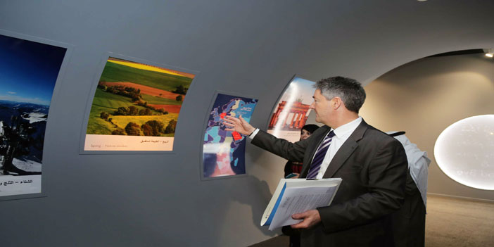 قبل الافتتاح قام أمس معالي سفير جمهورية ألمانيا الاتحادية بجولة في الجناح الألماني في مهرجان الجنادرية، باعتبار أن ألمانيا ضيف شرف، حيث اطلع معاليه على التجهيزات والاستعدادات لافتتاح الجناح لزوار المهرجان.