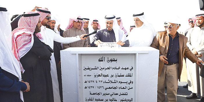 بعد ذلك ألقى مدير الجامعة الدكتور خالد المقرن كلمة رحب فيها بالحضور، وعلى رأسهم مدير التعليم بمحافظة المجمعة، وشكر الله سبحانه وتعالى على نعمه وتوفيقه، وأن يسر لهم تدشين مثل هذا المشروع الحيوي والمهم، الذي لم يتم إلا بتوفيق الله سبحانه وتعالى ثم بدعم حكومة خادم الحرمين الشريفين الملك سلمان بن عبدالعزيز، وصاحب السمو الملكي الأمير محمد بن نايف بن عبد العزيز ولي العهد والنائب الأول لرئيس مجلس الوزراء ووزير الداخلية وصاحب السمو الملكي الأمير محمد بن سلمان بن عبد العزيز ولي ولي العهد والنائب الثاني لرئيس مجلس الوزراء ووزير الدفاع - حفظهم الله - الذين يولون قطاع التعليم والحركة التعليمية جل اهتمامهم، ويقدمون دائمًا وأبدًا ما فيه رفعة مثل هذه المشروعات المباركة، كما قدم شكره وتقديره لوزير التعليم الدكتور أحمد العيسى على متابعته وجهوده ودعمه الكبير للجامعة، وأوضح أن هذا المشروع هو نتاج تكامل وتكاتف جهود الرجال المخلصين في هذه الجامعة، والدور الكبير الذي قدمه عميد معهد الملك سلمان للدراسات والخدمات الاستشارية الزميل الدكتور حمد العمران، وزملاؤه العاملون في المعهد، كما أن لتكامل العمل بين المعهد وعمادة خدمة المجتمع بقيادة الدكتور عمر الشريوفي وزملائه في العمادة دور كبير في العديد من المشروعات، ومنها هذا المشروع الذي يلامس أهم قطاع، وهو قطاع التعليم، وأضاف أن ثروة هذه البلاد ليست النفط فقط بل إن ثروة هذه البلاد هي الطلاب والطالبات في كل شرائح المجتمع وفئاته سواء في التعليم العام أو التعليم العالي، وهو الأمر الذي أشار إليه ولاة الأمر في هذه البلاد - حفظهم الله - الذين دائمًا ما يرسمون لنا طريقًا ورأيًا نستنير به، فالأمم لا تتقدم إلا بالتركيز على منظومة التعليم، وأعتقد أن جامعة المجمعة ومعهد الملك سلمان خصوصًا قد وفقًا في هذا المشروع، وأشار إلى أنه سعيد بما قدمته إدارة المشروعات، وعلى رأسهم المهندس فوزان الفهد، وزملاؤه المهندسون والعاملون في الإدارة وقدم شكره للمؤسسة المنفذة التي تعتبر شريكًا في النجاح.. بعد ذلك ألقى مدير التعليم الدكتور صالح الربيعة كلمة قدم خلالها شكره وتقديره لمدير الجامعة على دعوته للمشاركة في تدشين هذا الصرح التربوي والتعليمي الكبير وذكر أنه سعيد بهذا المشروع الذي سيكون إضافة مميزة للتعليم بمحافظة المجمعة؛ لأنه يعلم جيدًا العقلية التي تدار بها الجامعة، واأسلوب الذي تنفذ به مشروعاتها، وبرامجها، وقال: إننا في التعليم العام أكثر المستفيدين من هذا المشروع الذي سيكون بمشيئة الله مركز أساليب تدريسية راقية، وبرامج متميزة، وسيستفيد منها معلمونا ومعلماتنا من خلال زياراتهم لتطوير مهاراتهم، بعد ذلك اطَّلع مدير الجامعة والحضور على المخططات الخاصة بالمشروع وفي نهاية الحفل قام مدير الجامعة بوضع حجر الأساس إيذانًا بتدشين المشروع.