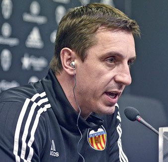 عندما كنت لاعباً، والآن كمدرب». وشرح نيفيل الاحتمالات التي لا تجعله يفكر بالاستقالة، رافضاً الإجابة حول مستقبله مؤكداً «الإيجابية تلازمني دائماً في حياتي، وعندما أواجه أوقاتاً كهذه لا أستمتع بها على الإطلاق، كان الأمر مؤلماً». وأوضح «كنا نلعب ضد فريق رائع، ولكن النتيجة غير مقبولة»، مضيفاً «أود التأكد من تفكير اللاعبين سيتحول إلى مباراة بيتيس الآن، لنكن واضحين، علينا الرد الأحد».