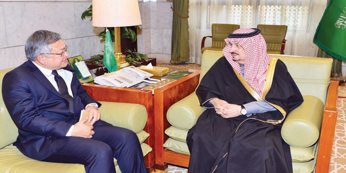 استقبل صاحب السمو الملكي الأمير فيصل بن بندر بن عبد العزيز أمير منطقة الرياض بمكتبه بقصر الحكم أمس، معالي الرئيس العام لشؤون المسجد الحرام والمسجد النبوي الشيخ الدكتور عبد الرحمن بن عبد العزيز السديس. وقدم معاليه لسمو أمير منطقة الرياض إهداء عبارة عن إصدارات علمية تنشرها الرئاسة العامة لشؤون الحرمين وهي موسوعة خطب الحرمين، ومشروع ترجمة الخطب باللغات المتعددة، ومجلدات لتراث أئمة الحرمين، ومجلة تعنى بالأبحاث عن الحرمين الشريفين.