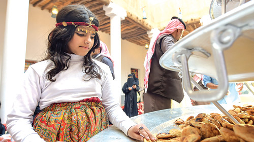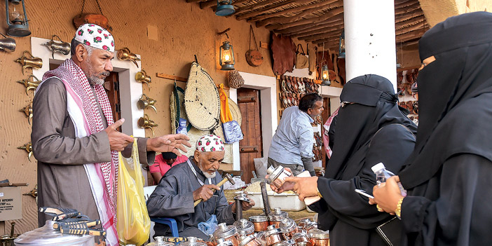 شهدت ساحة جناح منطقة القصيم كرنفالاً استثنائياً في بداية أول أيام دخول الأسر بمهرجان الجنادرية النسخة الحالية حيث تضم الساحة أكثر من ست فعاليات رئيسية ترتكز على قرابة40 محلاً تعرض للزوار مختلف الأصناف والمنتوجات التي تتميز بها المنطقة. وبين رئيس وفد منطقة القصيم عبدالله الزيد أن الساحة تتربع على مساحة كبيرة مما أعطى الجناح ميزات إضافية لمزيد من الفعاليات، مشيراً إلى عروض فرقة الدنانة الشعبية والعرضة السعودية والسامري إضافة إلى بقية الفنون الشعبية بمشاركة بعض الفرق كفرقة محافظة المذنب الشعبية هذا الأسبوع يليها بيت عنيزة للفنون الأسبوع القادم. وأكد الزيد على مكانة الأسر المنتجة حيث تشكل ست سيدات قصيميات جزءا كبيراً من فعاليات الجناح يقدمن لزوار المهرجان الكليجا طازجاً وبعضا من الحلويات الشعبية المختلفة، وأضاف قائلاً يوجد لدينا فعاليات أخرى كركوب الجمال والحرف اليدوية التي تتميز بها محافظات المنطقة منها 13 حرفياً متنوعين المجالات منها الخوصيات وفن النحت والجلديات والفنون التشكيلية واختتم الزيد حديثه بالإشارة إلى تجهيز قسم ضيافة العوائل الذي تم تخصيصه لأول مرة هذا العام. وتعكس ساحة جناح منطقة القصيم ثقافات المنطقة حيث يثع بها تصوراً واقعياً لمنطقة القصيم منها برج الشنانة التاريخي والواقع بمحافظة الرس وكذلك صخرة عنترة والواقعة في محافظة عيون الجواء بمنطقة القصيم يقع بجانبها سوق بني على اللون التراثي الأصيل لمنطقة القصيم.