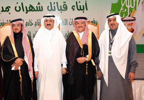 وبدأ الحفل بآيات بينات من القرآن الكريم للقارئ محمد بن عوضة الشهراني، ثم كلمة أبناء قبائل شهران في مدينة الرياض ألقاها نيابةً عنهم الشيخ عبد الله بن سعيد بن عبدالوهاب أبو ملحة، والتي قد تضمنت كلمته الكثير من مشاعر الولاء والوفاء لهذا الوطن الغالي وقيادته الرشيدة وعلى رأسهم خادم الحرمين الشريفين الملك سلمان بن عبدالعزيز حفظه الله، كما حملت مشاعر التقدير والإعجاب والدعاء لجنودنا الأبطال المرابطين على حدود مملكتنا الغالية، حفظهم الله وسدد رميهم.