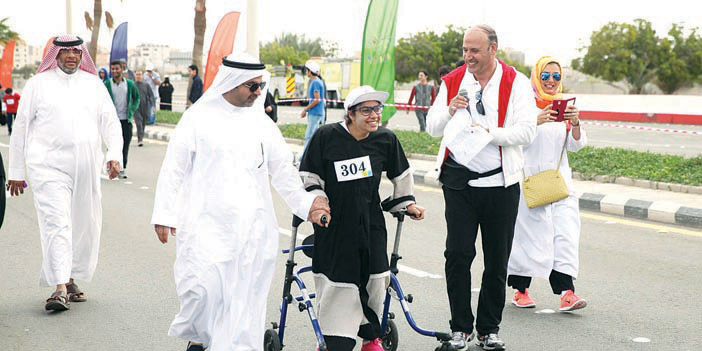 شارك من جمعية جمعية الأطفال المعاقين بمكة 15 طفلا وطفلة في فئتين من فئات المراثون وهي المشي أو الجري لمسافة كيلو لمن فوق 8 سنوات إضافة إلى الجري أو المشي لمسافة 500 متر للمن هم دون 8 سنوات وذلك بمشاركة ذويهم..