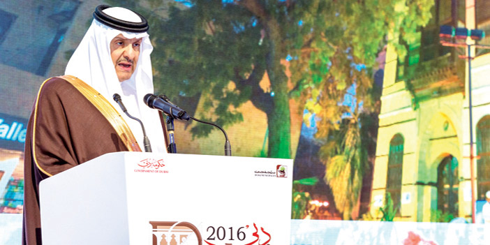 مشيراً إلى المؤتمرات والندوات المهمة التي عقدت في دول الخليج خلال العقود الماضية، ومن أهمها مؤتمر للتراث العمراني في الدول الإسلامية في مدينة الرياض في مايو 2010م برعاية خادم الحرمين الشريفين الملك عبدالله بن عبد العزيز - رحمه الله -، والذي انطلقت منه سلسلة ملتقيات التراث العمراني الوطني في المملكة، شاركت في أغلبها دولة الإمارات، بدءاً من الملتقى الأول في جدة عام 2011م, ثم في المنطقة الشرقية, ثم المدينة المنورة, وعسير، وأخيراً اللقاء الخامس للملتقى في منطقة القصيم عام 2015م، موجهاً سموه الدعوة لدولة الإمارات العربية المتحدة, لتكون ضيفَ الملتقى السادس المقرر عقده في مدينة الرياض شهر ديسمبر القادم إن شاء الله.