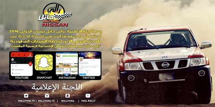 من جانب آخر اعتمد سموه وسائل التواصل الاجتماعية الرسمية المعتمدة لرالي حائل نيسان الدولي 2016م بالعناوين التالي: حساب التويتر والانستقرام RallyHail10 وحساب سناب شات RallyHail وقناة اليوتيوب Hail Rally، التي ستتواصل اللجنة الإعلامية بها مع الجمهور والمتابعين والمهتمين عن طريقها.