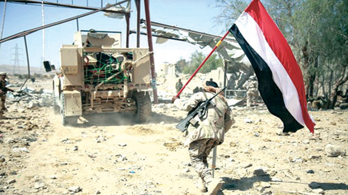 العميد الركن سمير الحاج الناطق الرسمي للجيش الوطني في اليمن تحدث لصحيفة الجزيرة حول عدد من القضايا الهامة المتصلة بمهام الجيش الوطني والعمليات الميدانية التى يخوضها في مواجهة الانقلابيين في مختلف مناطق اليمن، مستهلا حديثه عن الوضع في الشمال حيث تتقدم قوات الشرعية صوب صنعاء فقال «الأمور تسير بشكل جيد حسب ما هو مخطط له حيث اتجهت قواتنا من نهم إلى الشمال باتجاه أرحب للالتحاق بها ليقترب الجيش الوطني بذلك من مطار صنعاء الدولي، نحن نسير بخطى ثابتة ومنظمة وأحيانا الوقوف هنا أو هناك بعد مسافات طويلة من المعارك يكون لإعادة التنظيم والتجهيز والتقدم إلى مراحل أخرى من مراحل المعركة».