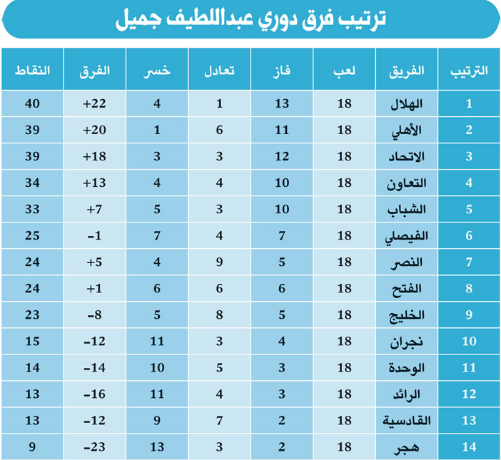 عزز الاتحاد حظوظه وآماله في انتزاع لقب دوري عبد اللطيف جميل بل وبات هو الأقرب في ظل تطور مستواه وانحدار مستوى المتنافسين سابقا «الهلال والأهلي»، وذلك بعد ان حقق فوزا ثمينا جدا على الهلال بهدف وحيد في المباراة التي جمعت الفريقين البارحة في استاد الملك فهد الدولي ضمن الجولة 18 للمسابقة.. سجل هدف الاتحاد مدافعه زياد الصحفي من تسديدة قوية من خارج المنطقة بعد مرور 6 دقائق فقط.