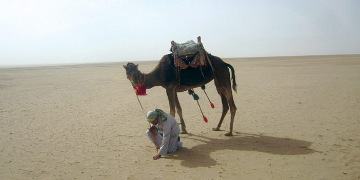 استيقظت مبكرا، ولكنني هذه المرة لم أقم يتصوير شروق الشمس كعادتي، على الرغم من عشقي لهذا الشروق، لأنني صورته الأيام الماضية. انهمكتُ في الكتابة على اللاب توب الصغير وتسجيل يوميات الرحلة حتى جاءت سيارة جيب ذات لون بني فاتح في الساعة السادسة والنصف صباحًا، جاء يسأل كعادة أهل الصحراء عن سبب حضورنا؟ ولماذا أقمنا في هذا المكان؟ وإلى أية منطقة ننتمي ، فقمت بإيقاظ الدكتور عيد اليحيى ليبجيبه عن تساؤلاته، وبدأ الجميع فجأة في الاستيقاظ .