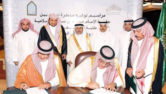 وقعت جامعة الإمام محمد بن سعود الإسلامية أمس مذكرة تعاون «مشروع الفهرس العربي للاستشهادات» مع مكتبة الملك فهد الوطنية، بحضور مدير الجامعة بالنيابة الدكتور فوزان بن عبدالرحمن الفوزان، وأمين عام المكتبة الأستاذ محمد بن عبدالعزيز الراشد، وذلك في مكتب مدير الجامعة، بحضور عدد من وكلاء الجامعة ومسؤوليها.