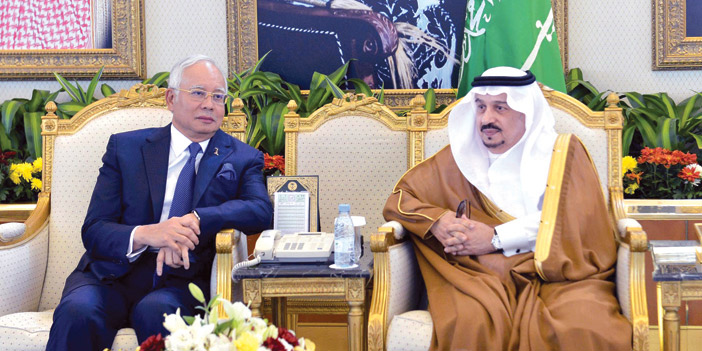 وكان دولة رئيس الوزراء الماليزي محمد نجيب تون عبدالرزاق قد وصل إلى الرياض أمس وكان في استقباله بمطار الملك خالد الدولي صاحب السمو الملكي الأمير فيصل بن بندر بن عبدالعزيز أمير منطقة الرياض، ووزير الدولة عضو مجلس الوزراء الدكتور مساعد بن محمد العيبان الوزير المرافق، وأمين منطقة الرياض المهندس إبراهيم بن محمد السلطان, وسفير خادم الحرمين الشريفين لدى ماليزيا فهد بن عبدالله الرشيد, وسفير ماليزيا لدى المملكة زينول رحيم زين الدين، ومندوب عن المراسم الملكية.