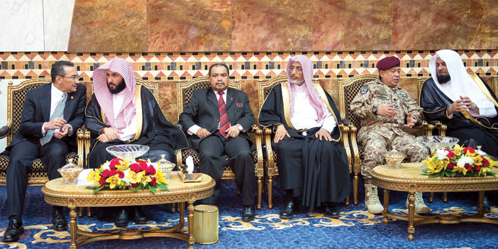 حضر الاستقبال صاحب السمو الملكي الأمير فيصل بن بندر بن عبد العزيز أمير منطقة الرياض، وصاحب السمو الملكي الأمير الدكتور منصور بن متعب بن عبد العزيز وزير الدولة عضو مجلس الوزراء مستشار خادم الحرمين الشريفين، وصاحب السمو الملكي الأمير متعب بن عبد الله بن عبد العزيز وزير الحرس الوطني، ومعالي وزير الدولة عضو مجلس الوزراء الدكتور مساعد بن محمد العيبان الوزير المرافق، ومعالي وزير الخارجية الأستاذ عادل بن أحمد الجبير، وسفير خادم الحرمين الشريفين لدى ماليزيا فهد بن عبد الله الرشيد.