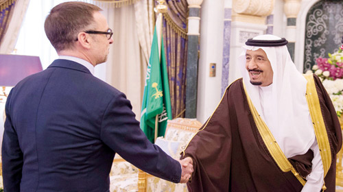استقبل خادم الحرمين الشريفين الملك سلمان بن عبدالعزيز آل سعود -حفظه الله- في مكتبه بقصر اليمامة أمس، الممثل الخاص للاتحاد الأوروبي لعملية السلام في الشرق الأوسط فرناندو جنتليني. وجرى خلال الاستقبال استعراض مستجدات الأوضاع في منطقة الشرق الأوسط والجهود المبذولة تجاهها. حضر الاستقبال معالي وزير الدولة عضو مجلس الوزراء الدكتور مساعد بن محمد العيبان، ومعالي وزير الثقافة والإعلام الدكتور عادل بن زيد الطريفي، ورئيس مندوبية الاتحاد الأوربي لدى المملكة آدم كولاخ، وعدد من المسؤولين.