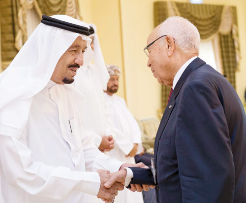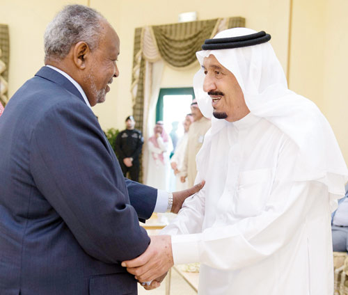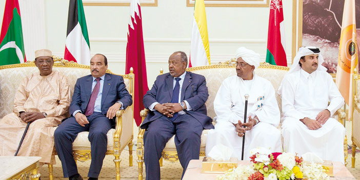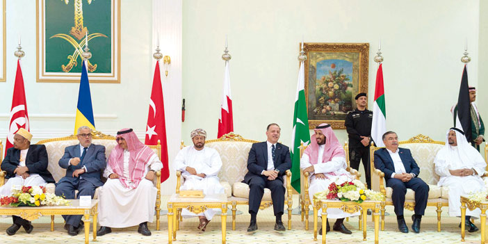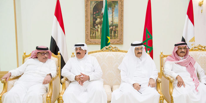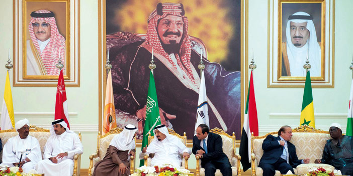 أقام خادم الحرمين الشريفين الملك سلمان بن عبدالعزيز آل سعود - رعاه الله - في الضيافة الملكية بمدينة الملك خالد العسكرية بحفر الباطن امس مأدبة غداء تكريماً لأصحاب السمو والفخامة والدولة والمعالي، وهم: صاحب السمو الشيخ صباح الأحمد الجابر الصباح أمير دولة الكويت وفخامة الرئيس عبدالفتاح السيسي رئيس جمهورية مصر العربية، وصاحب السمو الشيخ تميم بن حمد آل ثاني أمير دولة قطر ودولة السيد نواز شريف رئيس وزراء باكستان وفخامة الرئيس عمر حسن البشير رئيس جمهورية السودان، وفخامة الرئيس ماكي صال رئيس جمهورية السنغال وصاحب السمو الملكي الأمير سلمان بن حمد آل خليفة ولي العهد نائب القائد الأعلى النائب الأول لرئيس مجلس الوزراء بمملكة البحرين وفخامة الرئيس اسماعيل عمر جيله رئيس جمهورية جيبوتي وفخامة الرئيس محمد ولد عبدالعزيز رئيس الجمهورية الإسلامية الموريتانية وفخامة الرئيس الفريق الركن الطيار ادريس ديبي انتو رئيس جمهورية تشاد وفخامة الرئيس الدكتور اكليل ظنين رئيس جمهورية القمر المتحدة وفخامة الرئيس عبدربه منصور هادي رئيس الجمهورية اليمنية ومعالي رئيس الحكومة المغربية عبدالإله بنكيران ونائب رئيس مجلس الوزراء وزير الإسكان والأراضي وزير الشؤون الإسلامية والحج في جمهورية موريشيوس السيد شوكت سودهن وصاحب السمو الملكي الأمير فيصل بن الحسين، ومعالي الوزير المسئول عن شئون الدفاع بسلطنة عمان السيد بدر بن سعود بن حارب البوسعيدي وقائد القوات المسلحة الماليزي ذو الكلفي محمد زين ومعالي وزير الدفاع والأمن الوطني المالديفي آدم شريف وقائد القوات المسلحة في بروناي اللواء بهين محمد تاويه ومعالي وزير الدفاع الوطني التركي عصمت يلماز ومعالي الوزير الممثل الشخصي لرئيس الجمهورية التونسية الأزهر القروي الشابي. ولدى وصول أصحاب السمو والفخامة والدولة كان في استقبالهم صاحب السمو الملكي الأمير سعود بن نايف بن عبدالعزيز أمير المنطقة الشرقية وصاحب السمو الملكي الأمير محمد بن نايف بن عبدالعزيز ولي العهد نائب رئيس مجلس الوزراء وزير الداخلية وصاحب السمو الملكي الأمير محمد بن سلمان بن عبدالعزيز ولي ولي العهد النائب الثاني لرئيس مجلس الوزراء وزير الدفاع. حضر الاستقبال والمأدبة صاحب السمو الملكي الأمير عبدالإله بن عبدالعزيز آل سعود مستشار خادم الحرمين الشريفين، وصاحب السمو الأمير خالد بن فهد بن خالد، وصاحب السمو الملكي اأمير منصور بن سعود بن عبدالعزيز، وصاحب السمو الملكي الأمير طلال بن سعود بن عبدالعزيز، وصاحب السمو الملكي الأمير خالد بن بندر بن عبدالعزيز مستشار خادم الحرمين الشريفين، وصاحب السمو الملكي الأمير الدكتور منصور بن متعب بن عبدالعزيز وزير الدولة عضو مجلس الوزراء مستشار خادم الحرمين الشريفين، وصاحب السمو الملكي الأمير متعب بن عبدالله بن عبدالعزيز وزير الحرس الوطني، وصاحب السمو الأمير فهد بن عبدالله بن عبدالعزيز بن مساعد، وصاحب السمو الأمير تركي بن عبدالله بن محمد مستشار خادم الحرمين الشريفين، وصاحب السمو الأمير مشعل بن عبدالله بن عبدالعزيز بن مساعد أمير منطقة الحدود الشمالية، وصاحب السمو الملكي الأمير الدكتور حسام بن سعود بن عبدالعزيز، وصاحب السمو الملكي الأمير الدكتور عبدالعزيز بن سطام بن عبدالعزيز مستشار خادم الحرمين الشريفين، وصاحب السمو الملكي الأمير محمد بن عبدالرحمن بن عبدالعزيز، وصاحب السمو الملكي الأمير سلطان بن فهد بن سلمان بن عبدالعزيز، وصاحب السمو الملكي الأمير عبدالعزيز بن سعود بن نايف بن عبدالعزيز، وصاحب السمو الملكي الأمير أحمد بن فهد بن سلمان بن عبدالعزيز، وصاحب السمو الملكي الأمير عبدالله بن بندر بن عبدالعزيز، وصاحب السمو الملكي الأمير سعود بن سلمان بن عبدالعزيز، وصاحب السمو الملكي الأمير تركي بن سلمان بن عبدالعزيز، وصاحب السمو الملكي الأمير تركي بن هذلول بن عبدالعزيز، وصاحب السمو الأمير نواف بن سعد بن سعود، وصاحب السمو الملكي الأمير سلما