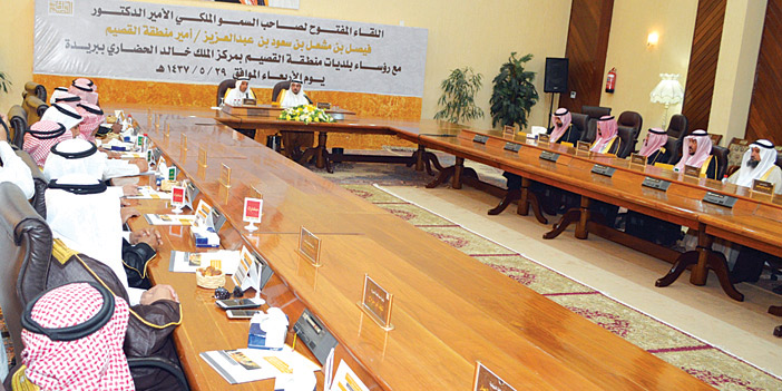 ترأس صاحب السمو الملكي الأمير الدكتور فيصل بن مشعل بن سعود بن عبدالعزيز، أمير منطقة القصيم، اجتماع سموه الدوري مع أمين منطقة القصيم، ورؤساء بلديات المنطقة. كما دشن سموه قبل الاجتماع التحول الإلكتروني لأمانة المنطقة، وذلك بمركز الملك خالد الحضاري بمدينة بريدة. هذا، وقد أشاد سمو أمير المنطقة بحجم الساحات البلدية في أمانة المنطقة وبلدياتها ودورها في احتواء الشباب، وطالب بتحقيق المزيد من خلال هذه الساحات وبالتعاون مع المؤسسات الاجتماعية؛ كما أكد سموه أن دور رؤساء البلديات لا يقتصر على تنفيذ الخدمات البلدية ويعتبر العصب الحقيقي لكل محافظة ومركز، ومتابعة وتحقيق التنمية أهم الأدوار التي يجب أن يسعى إليها في نظرة شاملة لكل ما تحتاجه المحافظة والمركز، وأهمية متابعة احتياج المجتمع من الميدان ومتابعة المشاريع وجذب الاستثمارات. وأضاف: يجب أن يكون لرئيس البلدية تطلعات معينة تحقق التنمية بمختلف الجوانب، مع الحرص المشهد الحضري للمحافظة والمركز.