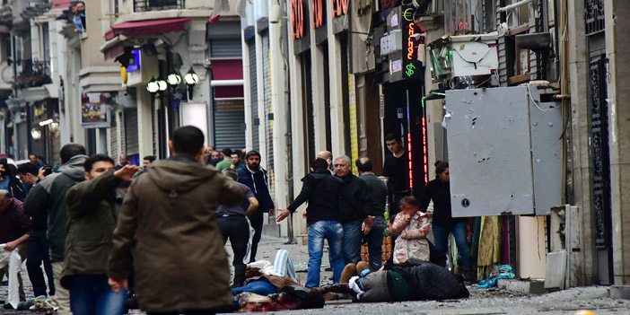 قتل مفجر انتحاري نفسه وأربعة مدنيين آخرين وأصاب 36 على الأقل في منطقة رئيسية للتسوق والسياحة بوسط مدينة اسطنبول امس السبت في رابع هجوم من نوعه في تركيا هذا العام.